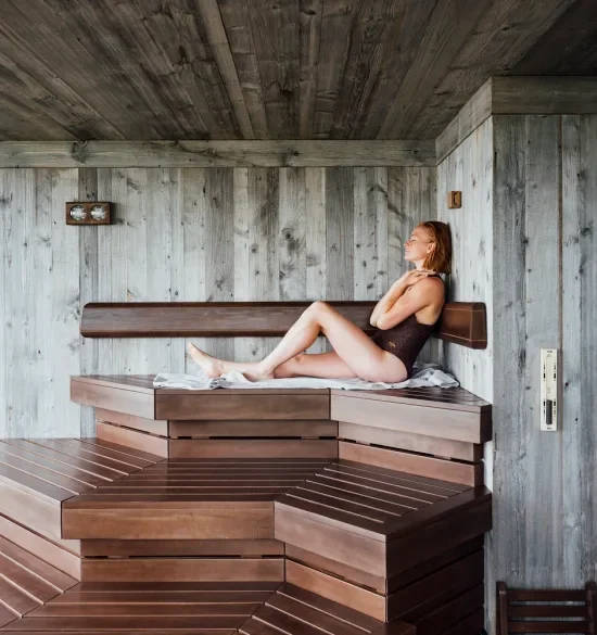 Guests can enjoy saunas, steam baths, hot tubs and a variety of relaxing treatments, all designed to restore balance and wellbeing. The large windows open up to breathtaking views, allowing nature to be part of the experience.
