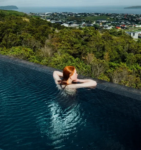 Ress Spa at Hotel Føroyar offers a peaceful escape surrounded by the dramatic Faroese landscape. Built into the hillside overlooking Tórshavn, the spa combines natural elements like stone, wood and water to create a calm and grounding atmosphere.